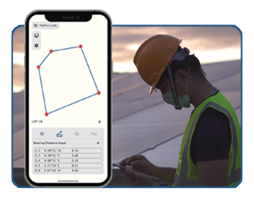 Revolutionize your workflow with the first mobile app that lets you plot, subdivide, and generate survey returns where ever you are. Minimize laptop use and maximize field productivity.